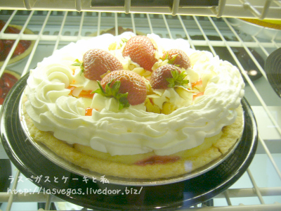 これの実物がTOPの画像のとおりで、ホイップうねうねたっぷりのとってもおいしそうなアメリカンなパイでした。ただでさえおいしいマリカレのバナナクリームパイとストロベリーが一緒になったら、一体どれだけおいしいんだろう!?