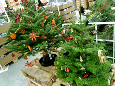 いとこも後日売り場で実物を見てみたのですが、とりあえず根元の木の部分が極端に短いものは、ヒモをほどいてもあまりツリーっぽいスタイルにはならないのではないかと思いました。でも、あの山積みされてる中から形の良さそうなものを選ぶのは至難の業!