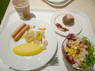 確か200円台だったので、モーニングプレートの倍以上(笑)。ウィンナーが食べられなくて、小さなオムレツと温野菜少しだけだと、なかなか満腹には程遠かったのですが、サラダを食べるとかなり満足度が違う感じ。満たされた!