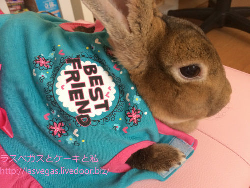セドナのペットショップで買ったお洋服。日本だと結構いいお値段するうさぎさんのお洋服ですが、なんとたったの5ドルちょい。いとこ夫には「どうせ着ないし」と反対されつつも、うーちゃん女子だしおしゃれしたいハズと、いとこ夫の反対を押し切って購入(笑)。