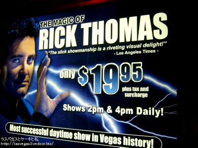 2006年02月13日 ●マジックショー カテゴリ:ラスベガス 2005年9月 by cherrypieland ブログネタ:◆ラスベガス◆ に参加中! 9月のラスベガス旅行記は、滞在七日目をレポ中です。 グランドキャナルショップスの「TSUNAMI」で遅めのランチを食べた後は、タクシーでまたもやスターダストへ向かういとこ達3人。ほんとに毎日スターダストに通勤状態ですが、真昼間に訪れた訳は、リック・トーマスのマジックショーを見るため! 続きを読む